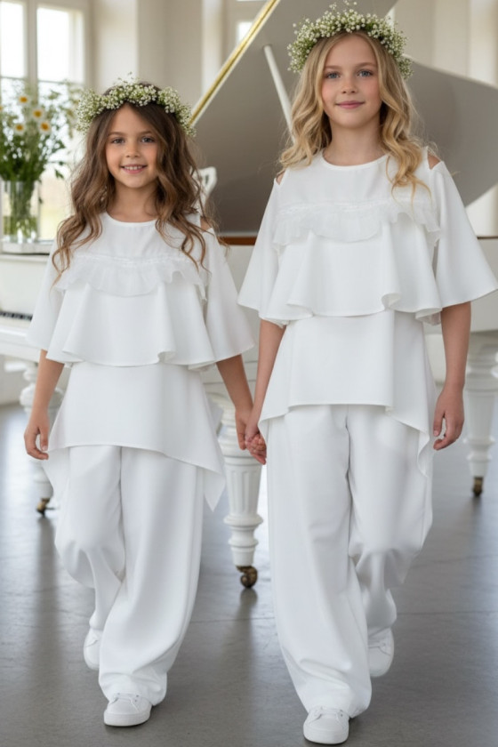 Sizes New Komplet bluzka i spodnie Lorein Falbanki zł299.99 Price 134 140 146 152 158 164 see product