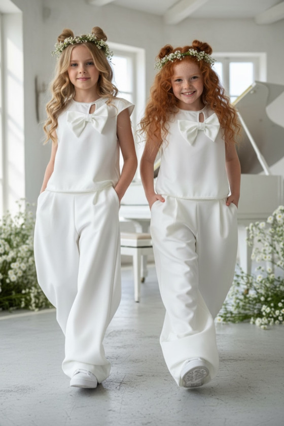 Sizes New Komplet bluzka i spodnie Perełki Kokarda zł299.99 Price 134 140 146 152 158 164 see product