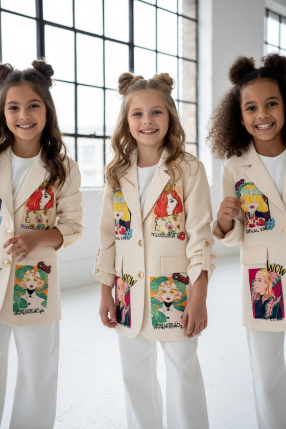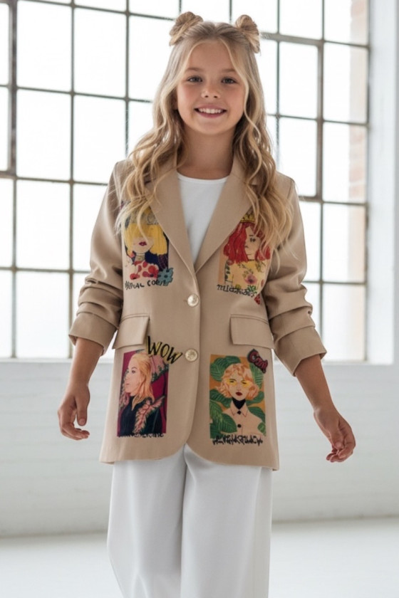 Sizes New Marynarka dla dziewczynki Wow caffe latte zł199.99 Price 134 140 146 152 158 164 see product
