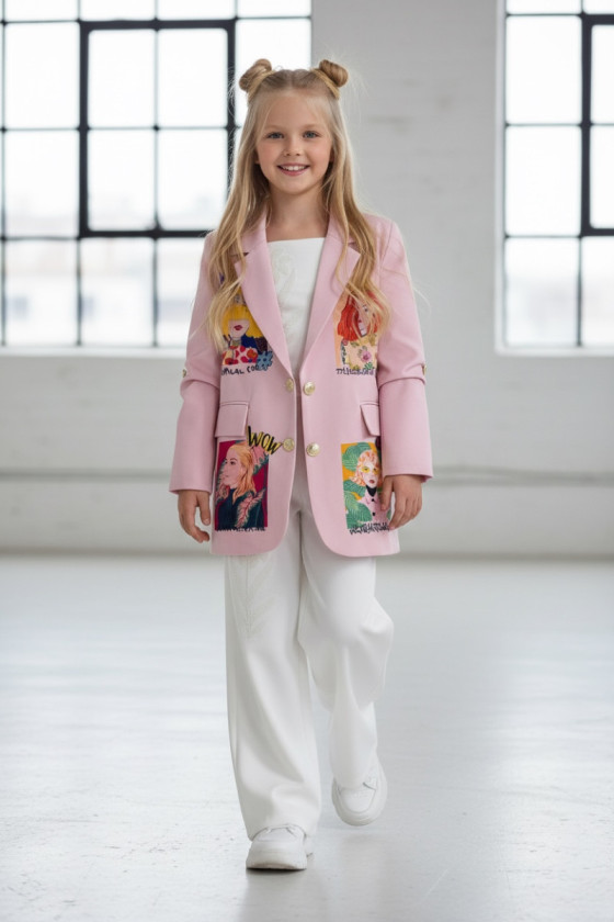 Sizes New Marynarka dla dziewczynki Wow pudrowy różowy zł199.99 Price 134 140 146 152 158 164 see product